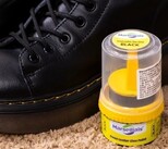 这罐小马赛人香氛鞋油,使用非常简单。自带一个海绵鞋刷,直接蘸取鞋油擦拭就可以了。