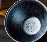 自然光下,盏面如深海,若隐若现的银白斑纹,依附在盏壁之上。