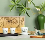 这套茶具灵感来源西泠印社首任社长的墨宝《 兰竹图 》《竹石图》,每套杯盏竹韵生香 ,雅兴悠悠。