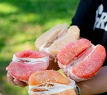 用刀绕果皮轻划一圈,轻松就能剥下果皮,通透的红肉丰厚饱满,一口就能咬破几百个饱含汁水的壁囊!
