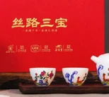 它之所以叫 “丝路三宝”,是因为礼盒中不仅有昌南陶瓷茶具,还包含天祥号红茶与喜得宝丝巾。