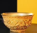 在《皇家龙凤金碗》的制作中,匠人采用高浮雕工艺,将龙凤图案从碗身 “凸起”,使得金龙的身躯、彩凤的羽翼都极具层次感,仿佛要挣脱碗身束缚,跃然眼前。