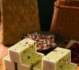 我们在糕点中加入了明前茶萃取的茶粉,高昂雅致的豆栗花香,让糕点入口便满溢清新。