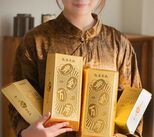 这款茶除了口味特别,设计也深得我心:茶盒做成“金砖”,里面装满黄澄澄的“金币”茶饼。